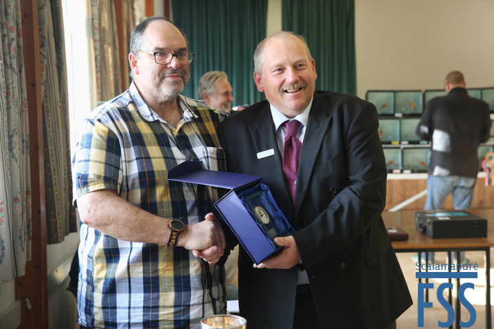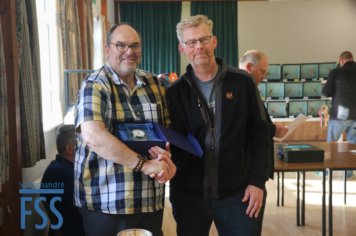 LCA Classic 2019: judge David Allen in actionLCA Classic 2019: the show hall with Chris Jordan and David Newton in chargeLCA Classic 2019: President John Martin awards the President’s Trophy for Best colour-fed Lizard to Alex Maclean (right)LCA Classic 2019: Best colour-fed Lizard, a broken cap gold hen by Alex MacleanLCA Classic 2019: Third Best colour fed Lizard, a clear cap gold hen by Alex MacleanLCA Classic 2019: John Martin awards the prize for Second Best colour-fed Lizard to Danny Richmond (left)LCA Classic 2019: Tony Horton (left) receives his award for Best natural Lizard from John MartinLCA Classic 2019: Best natural coloured Lizard, a non cap gold hen by Tony Horton (note the amber tint)