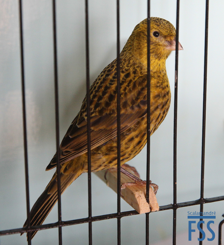 Natural coloured broken cap gold hen Lizard canary by Tony Horton