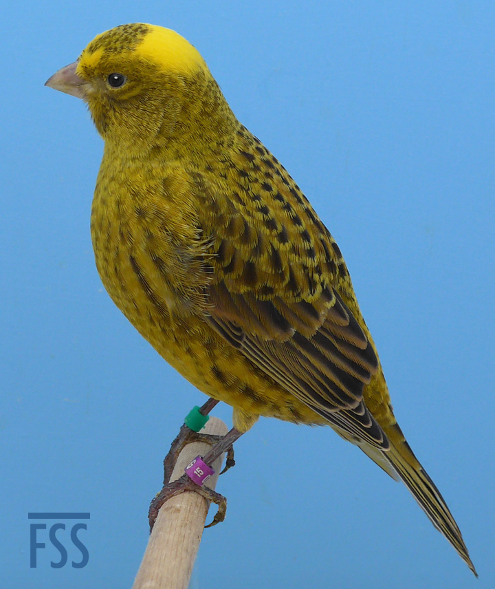 Notice how the back of the neck is plain, with only the slightest hint of any speckling. Many Lizard canaries share this failing; it is so common that it is rarely, if ever, penalised.