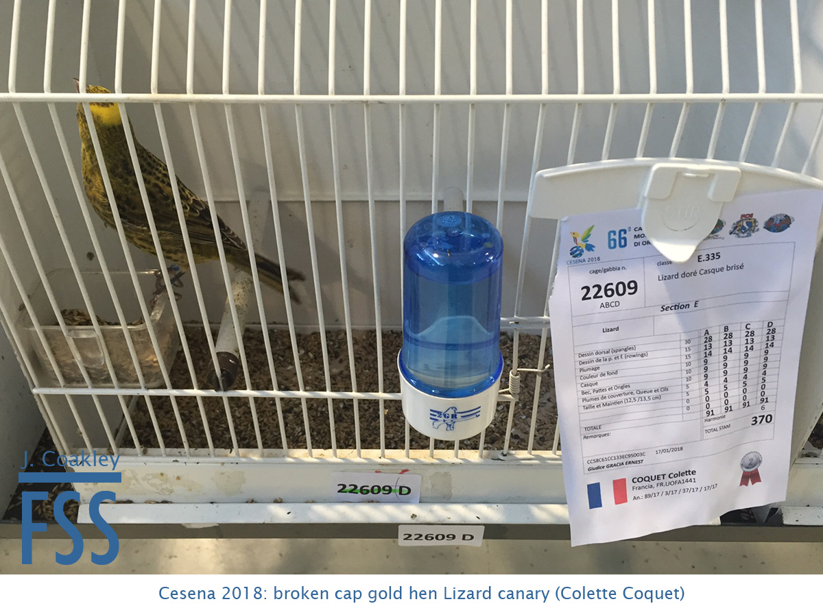 All canaries need time to settle if they are to display their show qualities, but the Lizard needs more than most for the simple reason that its spangles take time to line up. A good bird can easily be overlooked if it is rushed. Inevitably, there were examples of decisions being made in haste at Cesena.